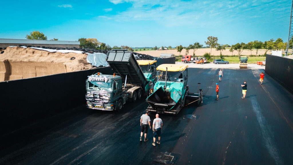 Ein Fahrsilo wurde auf einer Fläche von ca. 1.600 m² mit einer speziellen Asphaltdeckschicht asphaltiert.